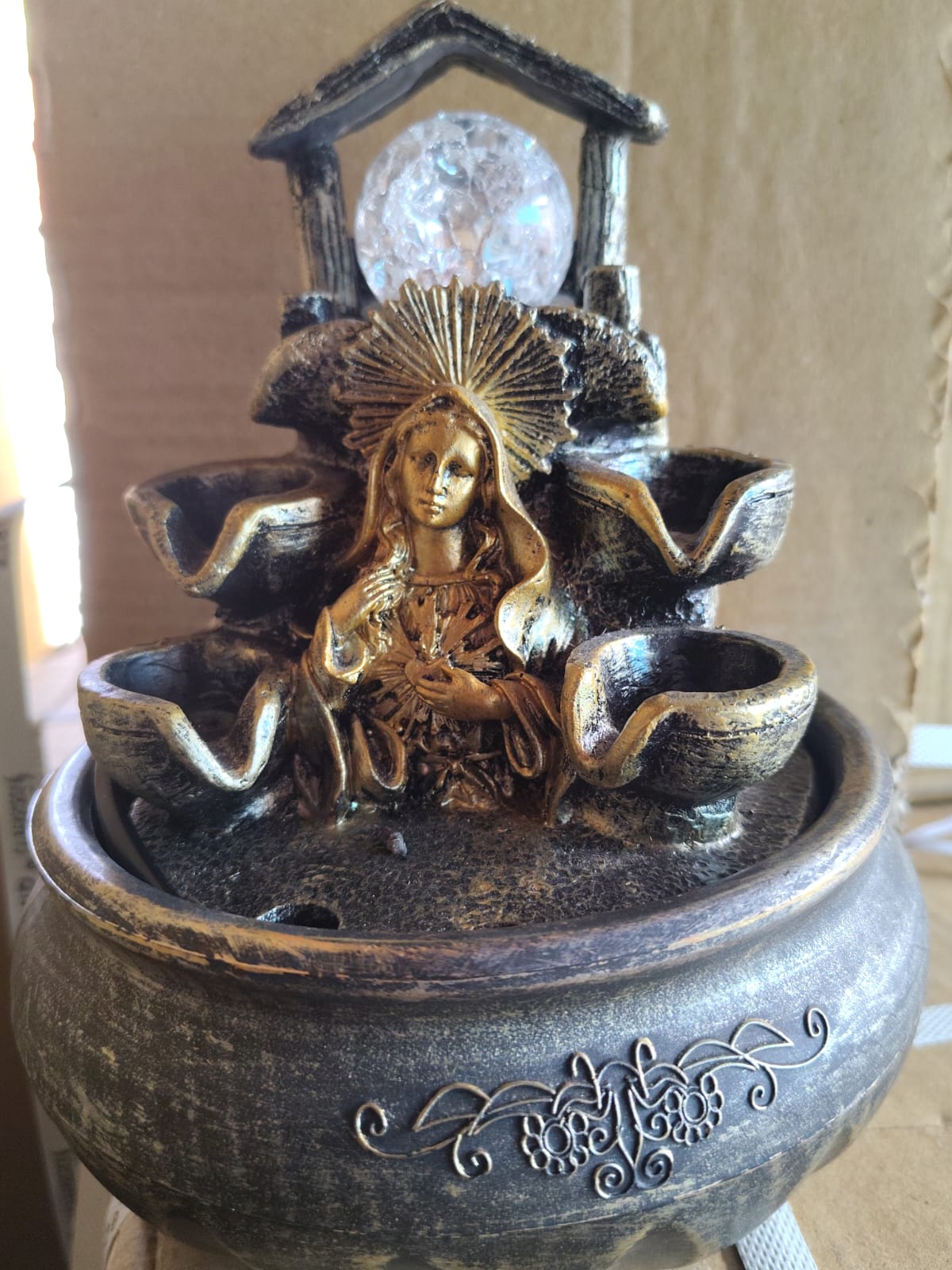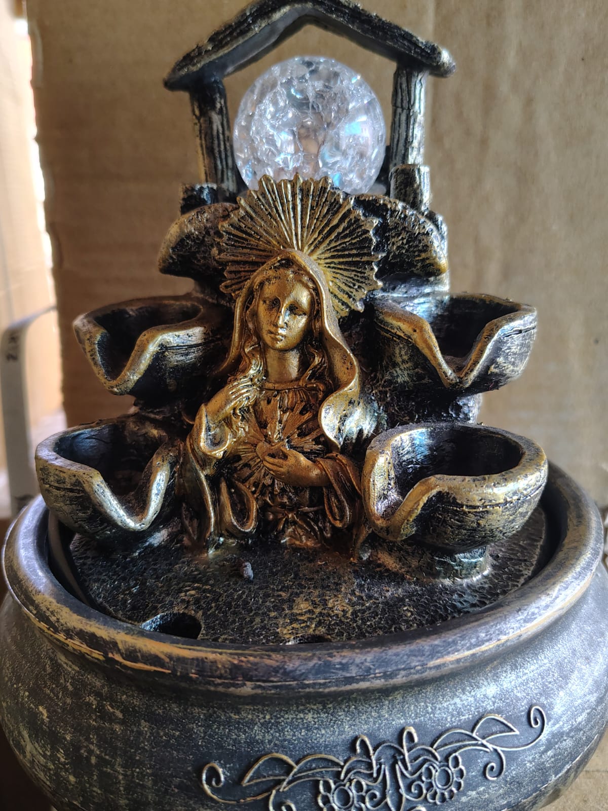 The gentle sound of flowing water combined with the divine presence of Mother Mary makes it perfect for meditation, prayer, and relaxation. The antique gold finish gives it a rich and premium look, enhancing any interior space.